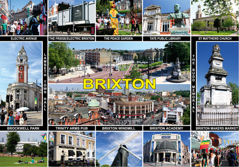 This postcard features views of the Camberwell Baths. (Now Cambewell Leisure Centre) Ruskin Park Bandstand. Lime Kiln, Burgess Park. St Giles Church. Old Camberwell Public Wash House. Denmark Hill Railway Station. The Portico, Ruskin Park. Jubilee Wing, King's College Hospital. Camberwell Green Surgery. Georgian Terrace, Camberwell Grove and Camberwell Green.